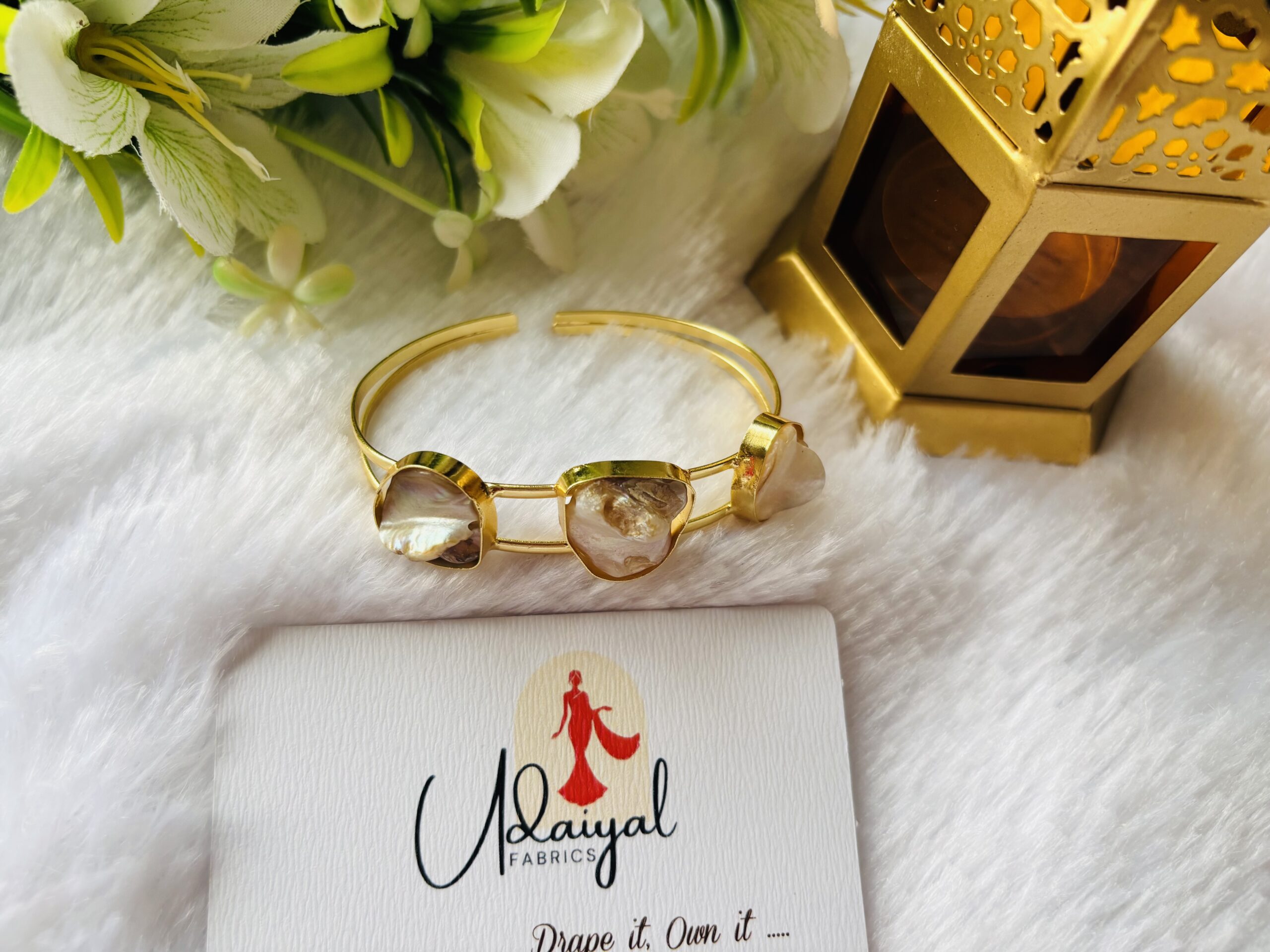 Brass 3 uncut stone bracelet